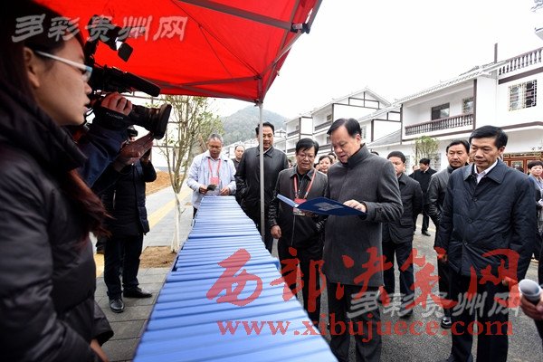 陳敏爾一行認真聽取黔西縣綠化鄉(xiāng)馬坎村安置點“兩短”“兩長”的產(chǎn)業(yè)脫貧致富路子的介紹