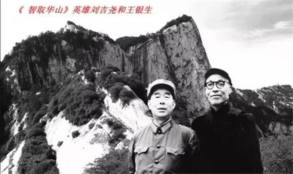 1949年6月,西北野戰(zhàn)軍解放了西安,當(dāng)華陰縣城解放時(shí),偽保六旅旅長韓子佩,帶一個(gè)警衛(wèi)營和旅直屬隊(duì)300余人逃到了華山上,企圖依靠華山天險(xiǎn)繼續(xù)同胡宗南聯(lián)系等待時(shí)機(jī),卷土重來。6月14日,中國人民解放軍大荔軍分區(qū)路東縱隊(duì)偵察參謀劉吉堯和六名偵察兵前往華山偵察道路。在當(dāng)?shù)叵驅(qū)蹉y生的帶領(lǐng)下,劉吉堯星夜帶領(lǐng)楊建東、路德才、孟俊甫、楊黨成、崔朝山、張自發(fā)等8勇士,到達(dá)猩猩溝盡頭。數(shù)百丈危崖聳立在面前,王銀生指著一個(gè)十丈高的黑洞說:“這是天井,我們就要從這里上去。”說著就把背著的大繩套在腰間,借著兩腿叉開的撐力,徐徐向上。10分鐘后,洞里放下來一根繩頭,7位偵察員依次被吊上天井。經(jīng)過一段險(xiǎn)坡后,前面又是一個(gè)高約15米的陡立石壑。王銀生施展他在山里采藥、打柴的本領(lǐng),借著一條石縫登上去,把繩子拴在一個(gè)木樁上,將其他同志吊上來。又向北行約1里便是“老虎口”,這是懸在絕壁上的一個(gè)崖歙,崖歙的上面伸出一個(gè)飛巖,下面是傾斜的滑坡,坡下便是一眼望不到底的萬丈深淵。這時(shí)候只要雙腿發(fā)軟,就會滑下去,尸骨無存。戰(zhàn)士們只能借著腰肢和肩膀的上下?lián)瘟?,好像一個(gè)木楔子似的慢慢通過。在漆黑的夜里,他們又下滑輾轉(zhuǎn)500多米,才到達(dá)北峰腳下。