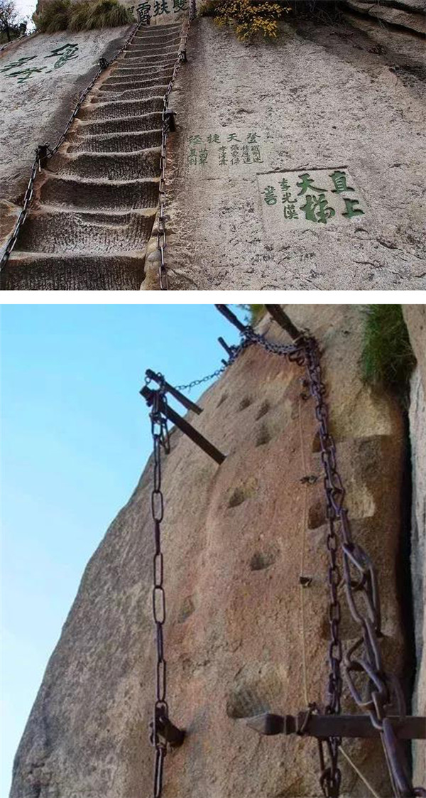 華山,被譽(yù)為奇險(xiǎn)天下第一山。它有著布滿奇險(xiǎn)的自古華山一條路,其中包括千尺幢、百尺峽、老君犁溝;它有著垂直90°的云梯;它有著一邊懸崖、一邊峭壁的長(zhǎng)空棧道;它有著寒索垂于凌空的鷂子翻身。來(lái)華山挑戰(zhàn)自我、挑戰(zhàn)奇險(xiǎn),感受大自然的神奇。