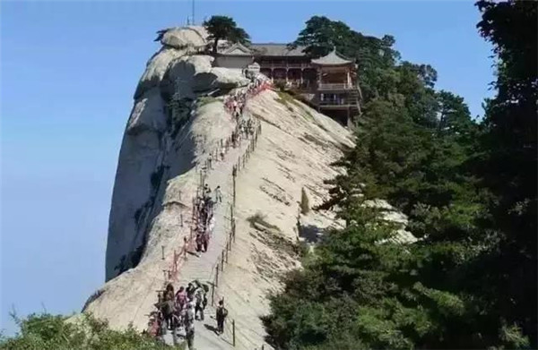 華山之險(xiǎn)的表現(xiàn)之一,在于登山之路蜿蜒曲折,到處都是懸崖絕壁,有“自古華山一條路”之說(shuō)。