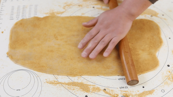 15.用搟面杖將糯米面團(tuán)搟成長方形面片。