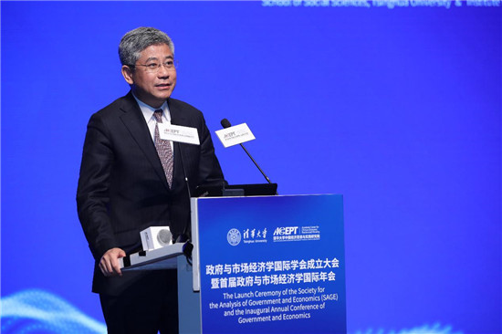 近日,在清華大學(xué)政府與市場經(jīng)濟(jì)學(xué)國際學(xué)會成立大會上,清華經(jīng)管學(xué)院院長白重恩發(fā)表演講。