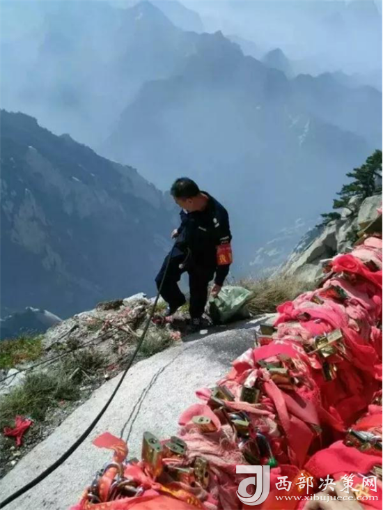 當(dāng)游客不聽勸阻屢次翻越圍欄拍照留念時,耐心勸阻,警示教育是我們?nèi)A山人的家風(fēng);