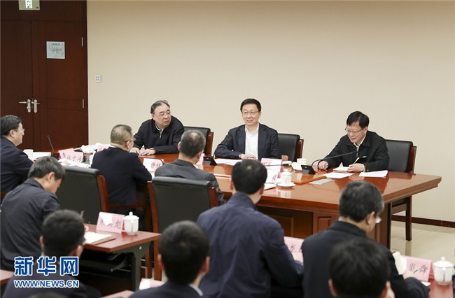 1月9日,中共中央政治局常委、國(guó)務(wù)院副總理韓正在國(guó)家醫(yī)療保障局召開座談會(huì)。 新華社記者 丁海濤 攝