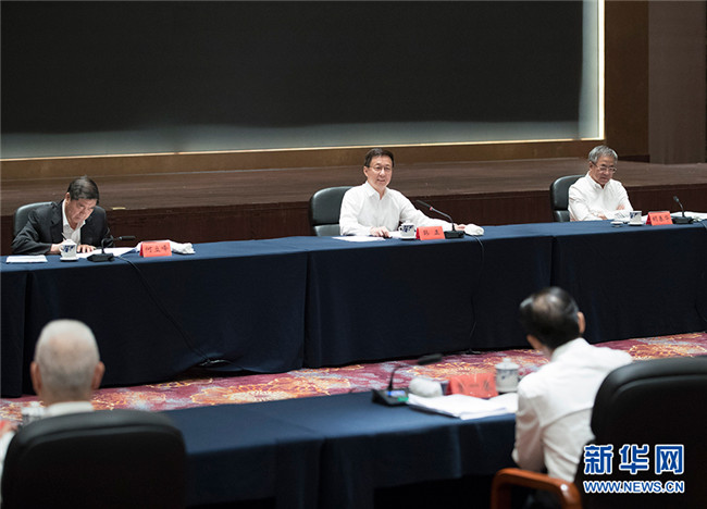 5月31日,中共中央政治局常委、國務(wù)院副總理、推進海南全面深化改革開放領(lǐng)導(dǎo)小組組長韓正在??谥鞒终匍_推進海南全面深化改革開放領(lǐng)導(dǎo)小組全體會議并講話。 新華社記者 王曄 攝