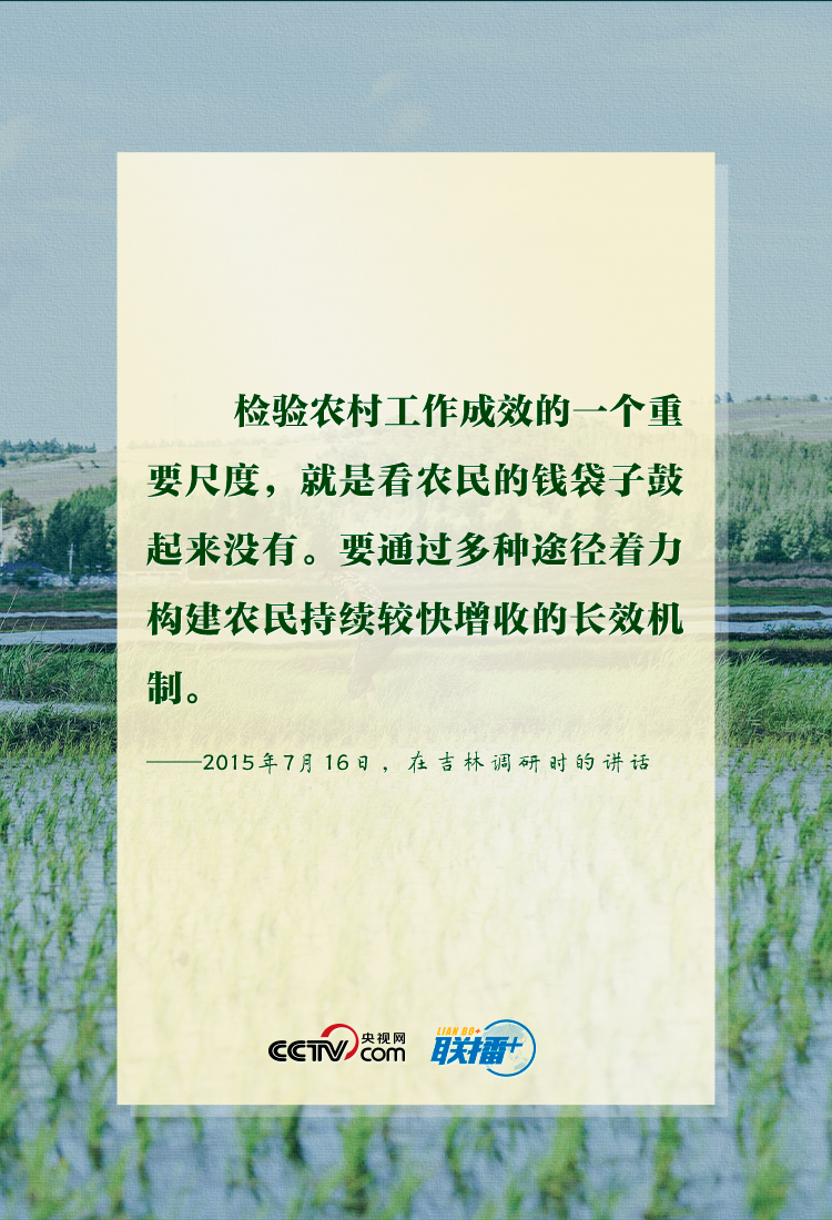 從黃土地走出的習近平總書記,對農(nóng)民有著特殊的情感。無論是國內(nèi)考察調(diào)研,還是主持召開農(nóng)村改革座談會,總書記總是想方設(shè)法讓廣大農(nóng)民的錢袋子鼓起來。在總書記心中,檢驗農(nóng)村工作成效的一個重要尺度,就是看農(nóng)民的錢袋子鼓起來沒有。