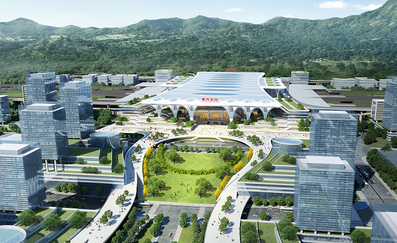 以重慶東站鐵路綜合交通樞紐的設(shè)計(jì)為例,該樞紐在設(shè)計(jì)時(shí)以城市綜合交通中心為核心,樞紐及周邊布置商業(yè),強(qiáng)化站城聯(lián)系,融合交通、商業(yè)、餐飲、休閑、文化、娛樂(lè)、景觀等多種功能于一體進(jìn)行規(guī)劃建設(shè),形成統(tǒng)一開(kāi)放的“山、景、城”融合一體的城市公共空間。