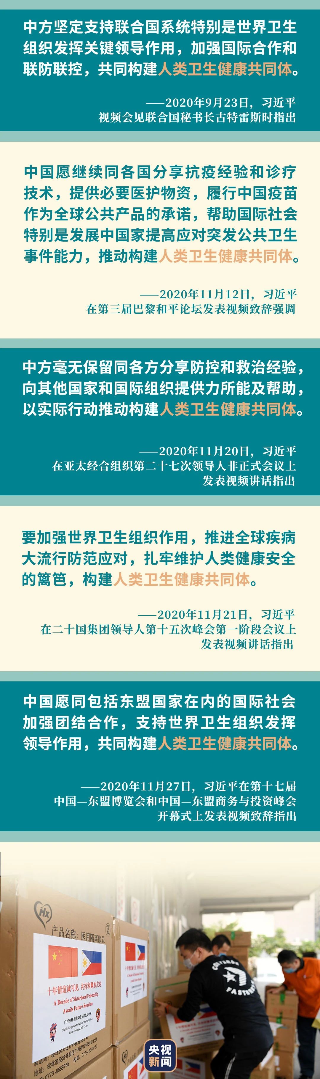 2020年3月,中國(guó)疫情防控的關(guān)鍵時(shí)刻,習(xí)近平主席向法國(guó)總統(tǒng)馬克龍致慰問(wèn)電時(shí)首次提出“打造人類(lèi)衛(wèi)生健康共同體”的理念。2020年4月2日,在同印度尼西亞總統(tǒng)佐科通電話時(shí),習(xí)近平重申:“中國(guó)將秉持人類(lèi)命運(yùn)共同體理念,為全球疫情防控分享經(jīng)驗(yàn),提供力所能及的支持,同各國(guó)一道促進(jìn)全球公共衛(wèi)生事業(yè)發(fā)展,構(gòu)建人類(lèi)衛(wèi)生健康共同體。”