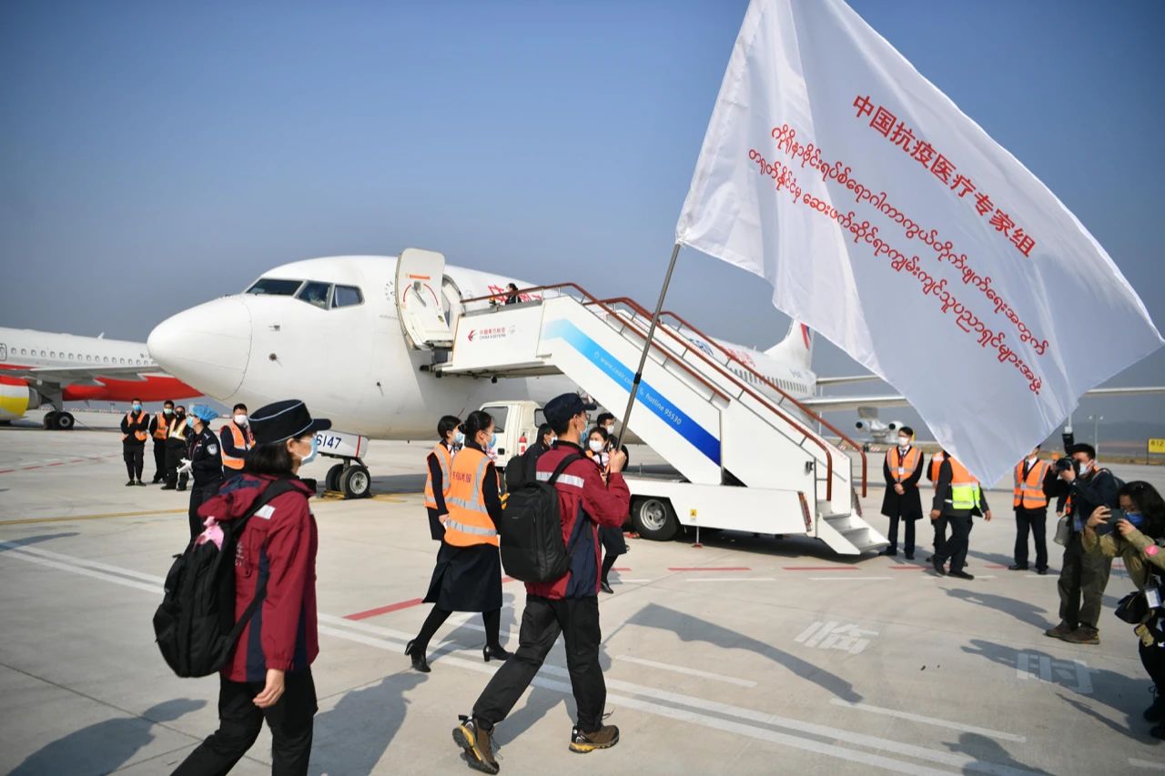 △2020年4月8日,應(yīng)緬甸政府邀請(qǐng),中國(guó)赴緬甸抗疫醫(yī)療專(zhuān)家組從云南昆明出發(fā),赴緬甸協(xié)助當(dāng)?shù)刈龊靡咔榉揽毓ぷ鳌?/p>