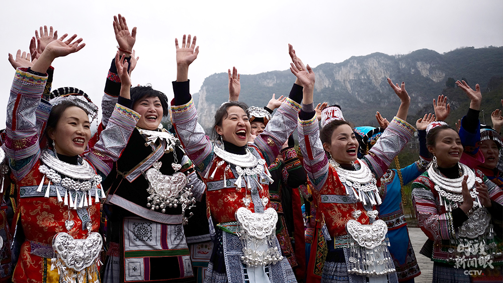 △廣場(chǎng)上熱烈歡迎總書(shū)記到訪的苗寨村民(總臺(tái)央視記者張宇、彭漢明、王哈男拍攝)