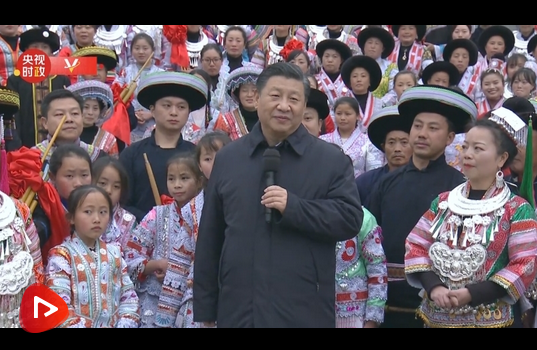2月3日下午,習(xí)近平總書記來到貴州畢節(jié)市黔西縣新仁苗族鄉(xiāng)化屋村考察調(diào)研。在村文化廣場上,少數(shù)民族群眾載歌載舞,歡度春節(jié)。