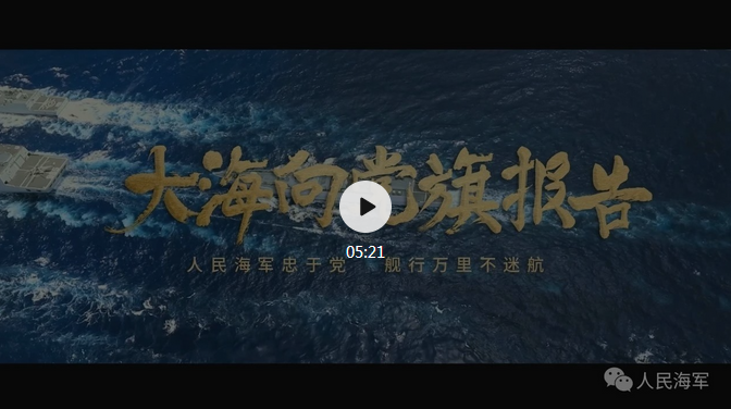 “潛航大洋,他們是捍衛(wèi)國家主權(quán)的殺手锏;翱翔海天,他們是維護(hù)祖國安寧的急先鋒;蛟龍突擊,他們是攻無不克的奪命刃……”在人民海軍成立72周年之際,海軍向全社會公開發(fā)布主題宣傳片《大海向黨旗報告》,慶祝黨的百年華誕。通過展現(xiàn)海軍一線部隊(duì)忠誠使命、英勇善戰(zhàn)、建功海洋的精神追求,讓你領(lǐng)略新時代海軍官兵的家國情懷,讓你感悟人民海軍向海圖強(qiáng)的豪情壯志。(視頻:海軍政治工作部宣傳局、新華社解放軍分社 聯(lián)合攝制 /文字: 李珂嘉賀 孫飛 /編輯:高澤明)