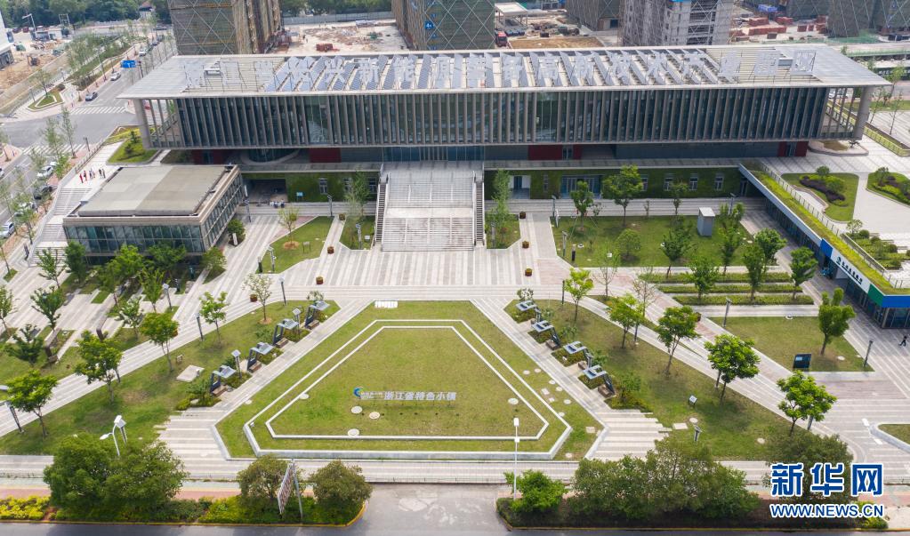 空中俯瞰浙江省長興縣畫溪街道新能源小鎮(zhèn)“城市客廳”(2020年5月21日攝,無人機照片)。新能源小鎮(zhèn)“城市客廳”采用分布式光伏建筑一體化發(fā)電系統(tǒng),年發(fā)電量達28萬千瓦時,在滿足建筑主體自用的前提下,多余電量還可并入電網(wǎng),產(chǎn)生“綠色收益”。新華社記者 徐昱 攝