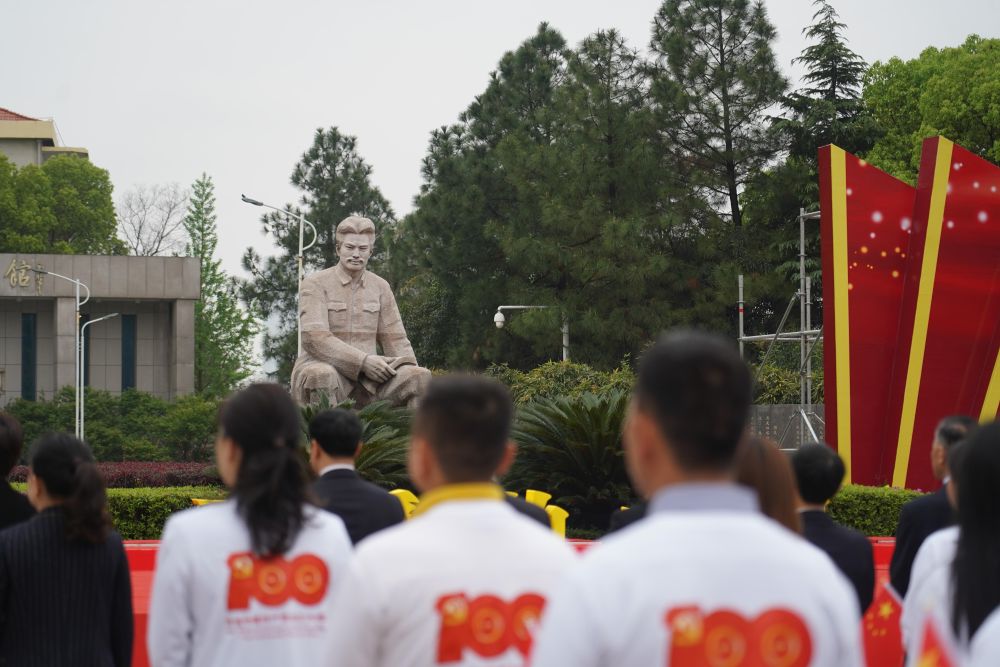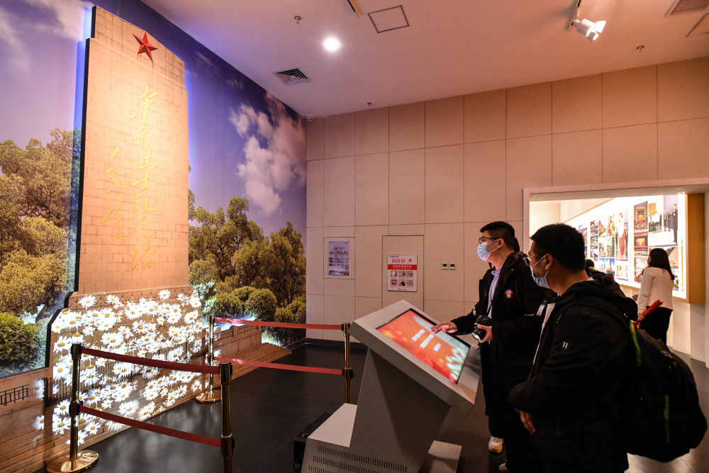 ↑2021年4月2日,人們?cè)诮魇∧喜蟹街久魪V場(chǎng)參加紀(jì)念活動(dòng),緬懷先烈,開(kāi)展黨史學(xué)習(xí)教育。