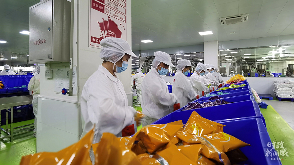 △柳州螺螄粉配料包生產(chǎn)線(總臺(tái)央視記者郭鴻拍攝)