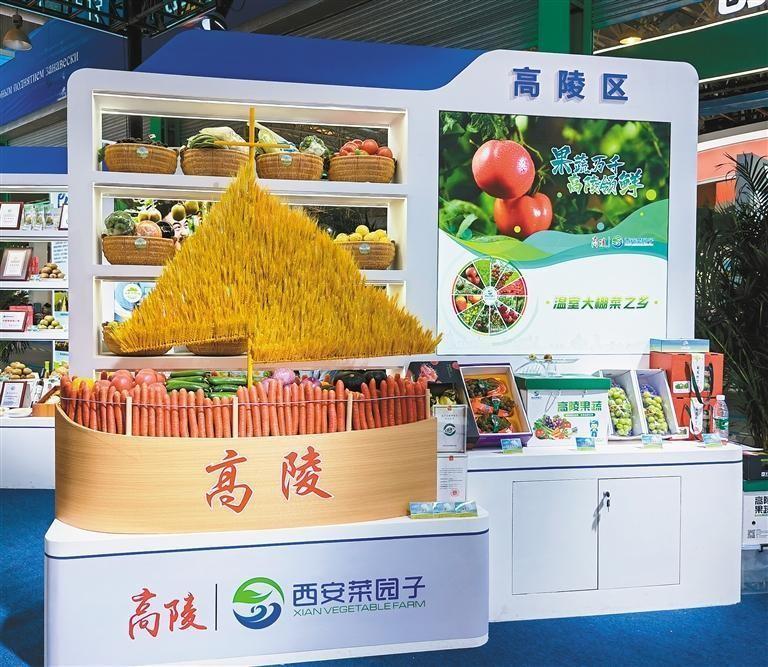 西安“菜園子”高陵區(qū)為本屆農(nóng)高會帶來了“帆船”造型的果蔬大菜籃,只見這艘由小麥為帆,“乘坐”著紅黃彩椒、國家地理標(biāo)志耿鎮(zhèn)胡蘿卜、貝貝南瓜、洋蔥、青翠乳瓜、水果西紅柿的“帆船”仿佛正揚(yáng)帆起航、乘風(fēng)破浪,昭示著西安市春夏秋冬四季蔬果供應(yīng)不斷,市民群眾的菜籃子、米袋子、果盤子豐富多彩,生活蒸蒸日上。