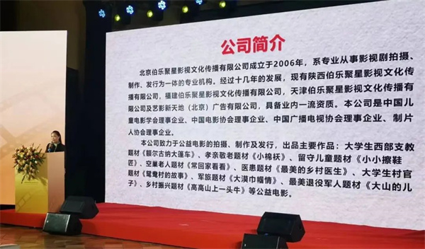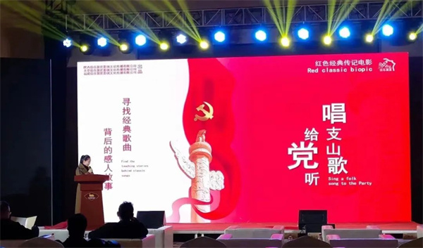 伯樂聚星影視董事長,該片總出品人、總制片人高秀云受邀出席推介會(huì),并登臺(tái)向領(lǐng)導(dǎo)及眾來賓隆重介紹電影《唱支山歌給黨聽》。