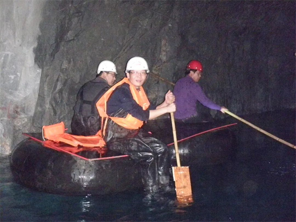 李凌志(中)帶領(lǐng)團(tuán)隊(duì)深入隧道解決突涌水難題。圖片來(lái)自中鐵第一勘察設(shè)計(jì)院