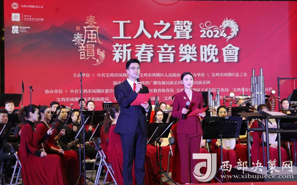 西部決策網(wǎng)訊(記者劉玉 韓宗憲 通訊員 任紅兵 楊媛 李一平 梁軍 撒開紅)龍吟國(guó)瑞強(qiáng)音振,鳳舞雍城駿業(yè)騰。2月5日晚,由寶雞市鳳翔區(qū)委和區(qū)政府主辦,區(qū)總工會(huì)承辦的鳳翔區(qū)工人之聲——“秦風(fēng)秦韻”2024年新春音樂(lè)晚會(huì)精彩上演,來(lái)自陜西省廣播電視民族樂(lè)團(tuán)和陜西民族樂(lè)團(tuán)的名家新秀齊聚一堂,為廣大觀眾呈獻(xiàn)了一場(chǎng)喜慶歡騰、歡樂(lè)祥和的文藝大餐和視聽盛宴。