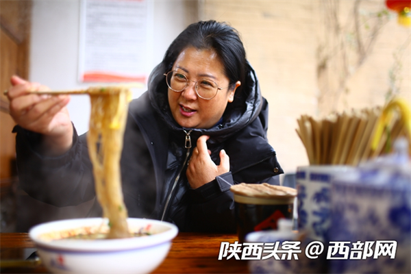西部網(wǎng)訊(記者 馬晴茹 賀桐 杜鵬)一手拎著麻花酸奶,一手牽著活蹦亂跳的孩子,2月16日(大年初七),游客劉先生帶著一家三口漫步在陜西咸陽禮泉縣袁家村的小吃街,整個(gè)街巷擠滿了人。剛吃完酸辣粉,他又開始環(huán)顧四周覓尋下一個(gè)不用排隊(duì)的美食。