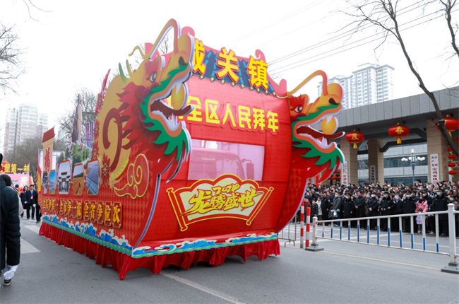 車頂上昂首挺立、踏云欲飛的金龍,象征著城關(guān)鎮(zhèn)在2024年“龍騰四海”。鳳翔泥塑十二生肖裝飾,凸顯了城關(guān)鎮(zhèn)文旅融合前景廣闊。