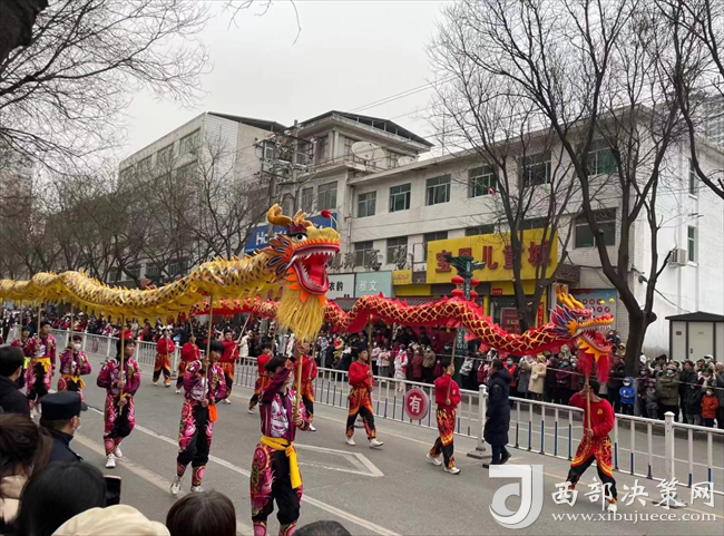 “龍騰盛世啟華章,獅舞太平譜新篇” 。2月19日(正月初十)上午,寶雞市鳳翔區(qū)秦景北路至雍城大道路段兩側(cè)人山人海,熱鬧非凡,數(shù)十萬群眾翹首等待駐足觀看鳳翔區(qū)“龍騰盛世”社火游演。